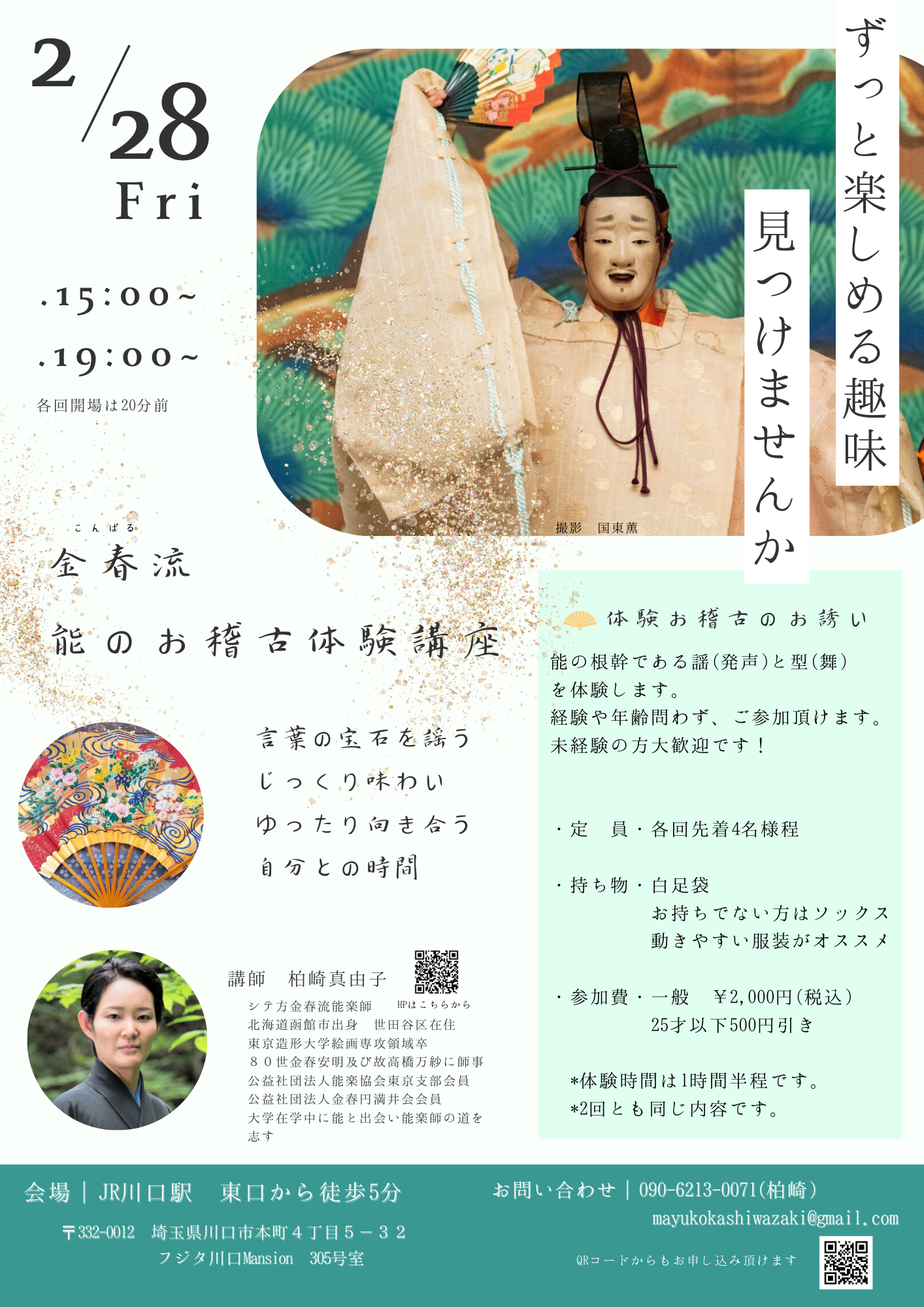 謡(うたい)と舞(まい)のお稽古を気軽に体験頂ける講座です。