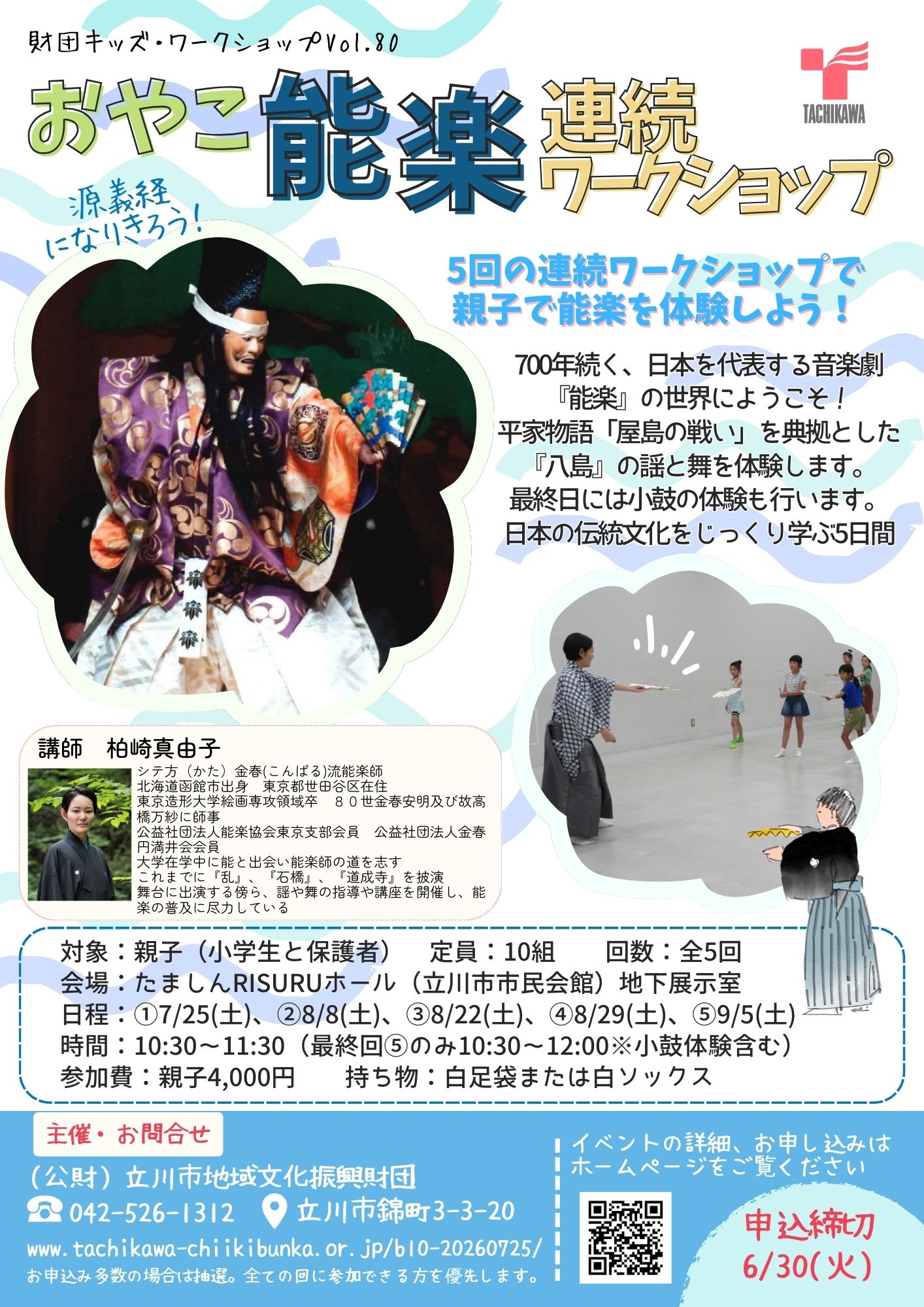 立川市地域文化振興財団さまで親子を対象とした能楽体験講座をさせて頂きます。